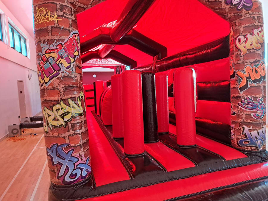 Transform your event into an unforgettable adventure with our vibrant 45ft Graffiti Inflatable Obstacle Course. Perfectly designed for bouncy castle hire in Devon & Cornwall, this inflatable marvel offers an exciting blend of fun and challenge that entertains participants of all ages. 🎈